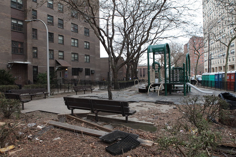 Bloom, with whom I usually agree, begins with the observation that NYCHA projects are dominated by unbuilt open space. It may be “unbuilt,” but it is open space used for playgrounds, athletics, benches, promenades, parking, and other facilities used by both NYCHA tenants and residents and workers of the surrounding neighborhood.