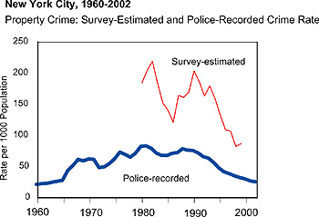 There is no doubt that from 1991 through 2002 New York City experienced a remarkable drop in crime. From an analysis(PDF Format) presented at a conference in Italy by two US Department of Justice statisticians in late 2003, one can see that no matter how one looks at it, crime dropped massively in New York City. Yet the popular explanation for the decline, favored by a former police commissioner and a former mayor and many crime specialists, no longer seems as convincing as it once did. How can we be sure that the "reported crime rate" is the real crime rate? More importantly, how do we know if the crime rate is truly dropping and how fast it is dropping?