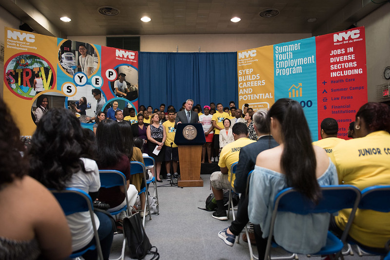 Mayor de Blasio makes a summer youth employment announcement (photo: Michael Appleton/Mayor's Office)